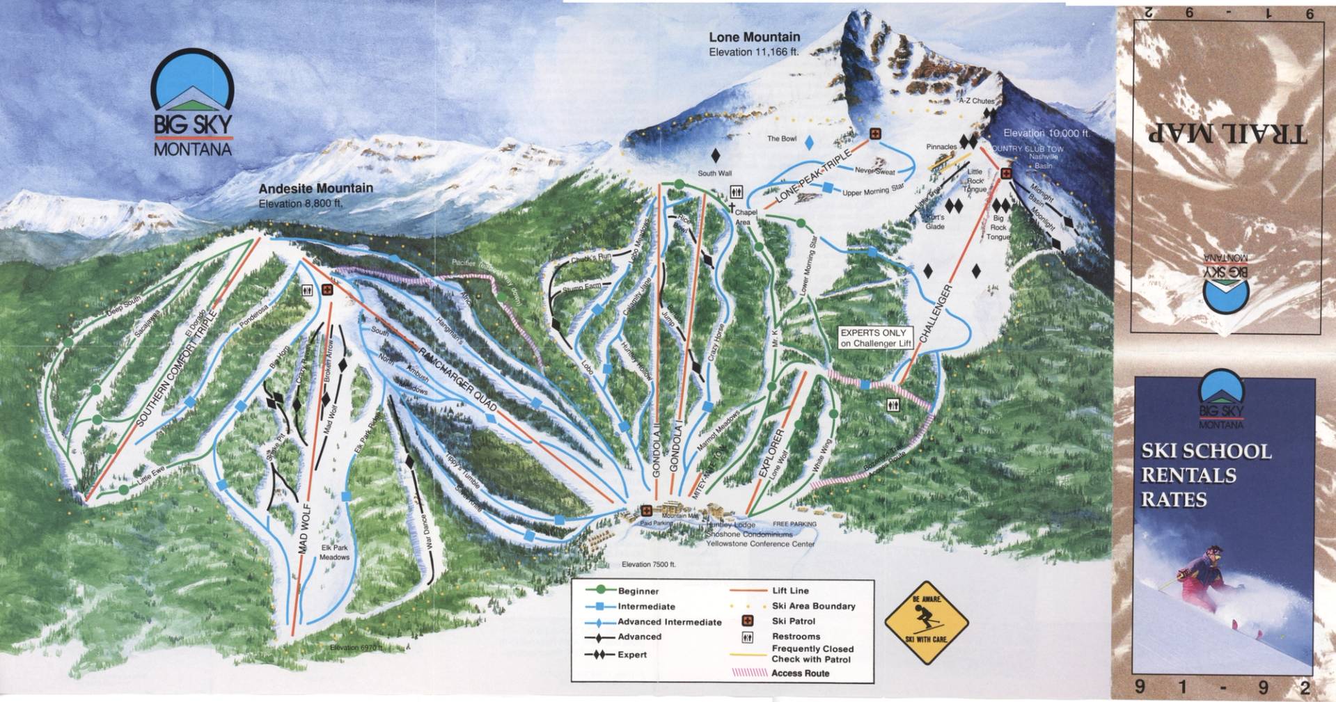 In 1978, the Mad Wolf double chairlift was installed on Andesite Mountain. Mad Wolf substantially increased total skiable acres, as well as enhanced the intermediate and expert terrain offered at Big Sky Resort.