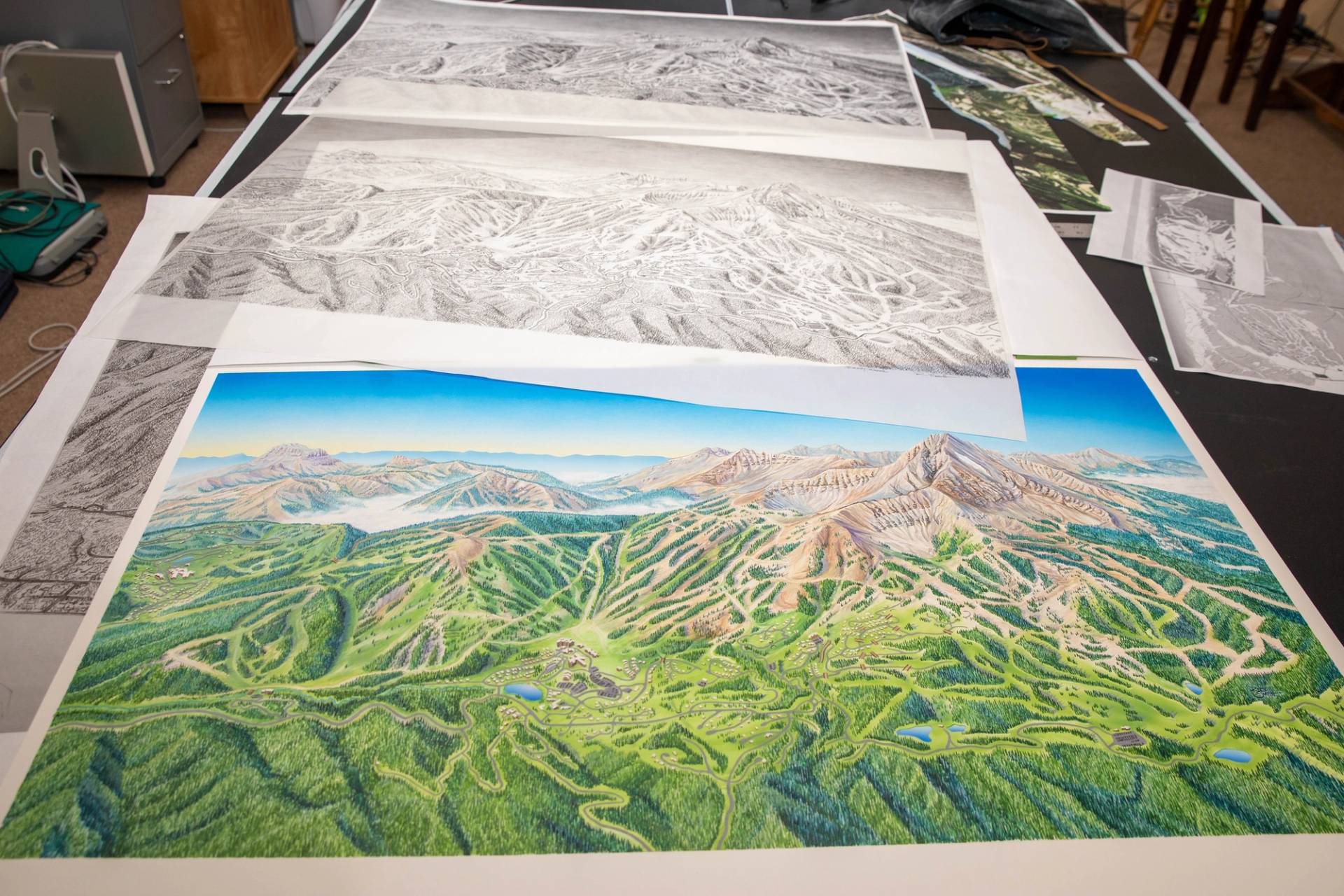 To start, Siberell invited Smith to the resort to explore Lone Mountain on mountain bikes in the summer and take reference photos. From there, she said, Smith worked through his process.