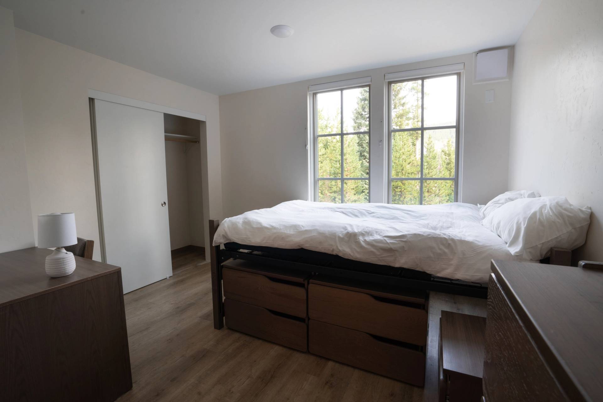 In August 2024, Big Sky Resort team members moved into two new buildings at the Levinski Lodge campus. One building offers studio, one-bedroom, and two-bedroom apartments, and the other is a dormitory-style building. Residents have access to communal kitchens (for those living in dormitory-style spaces), an outdoor patio space, a state-of-the-art gym, a ski and bike storage room, private study rooms, laundry facilities, and a recreation room filled with games, couches, and a TV.