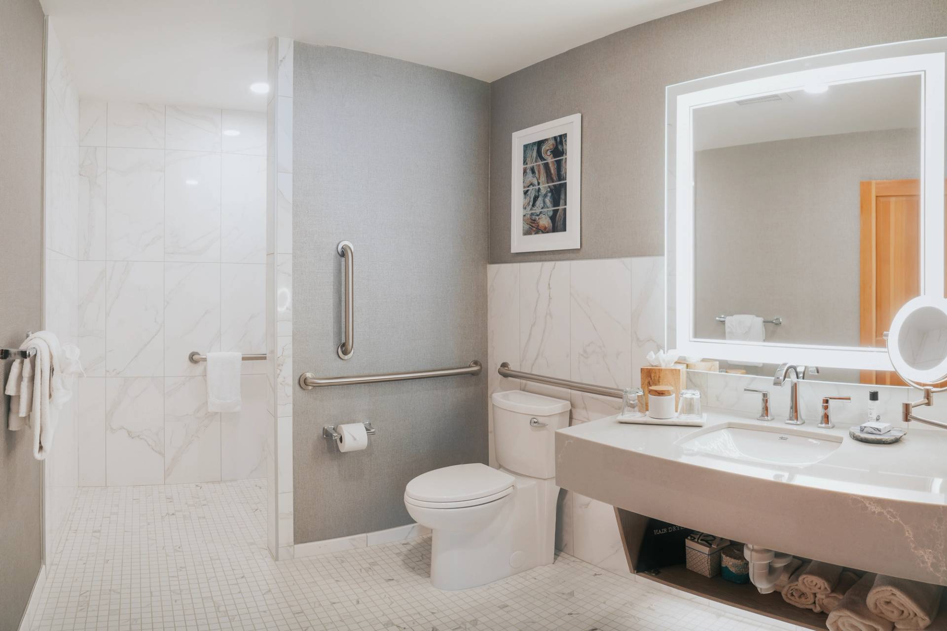 Our Mobility Accessible King rooms provides ADA-accessible features, modern amenities, and thoughtful touches, ensuring a comfortable and inclusive stay for all guests.